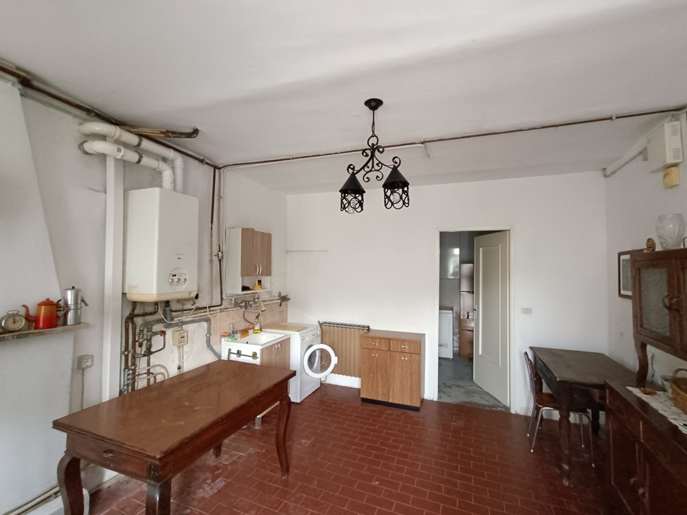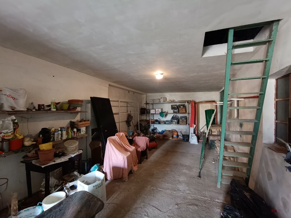 Piano Terra: ingresso su disimpegno, soggiorno, cucina, camera da letto, bagno di servizio, antibagno, locale di sgombero (locale caldaia), cantina, autorimessa e ampio locale magazzinaggio.