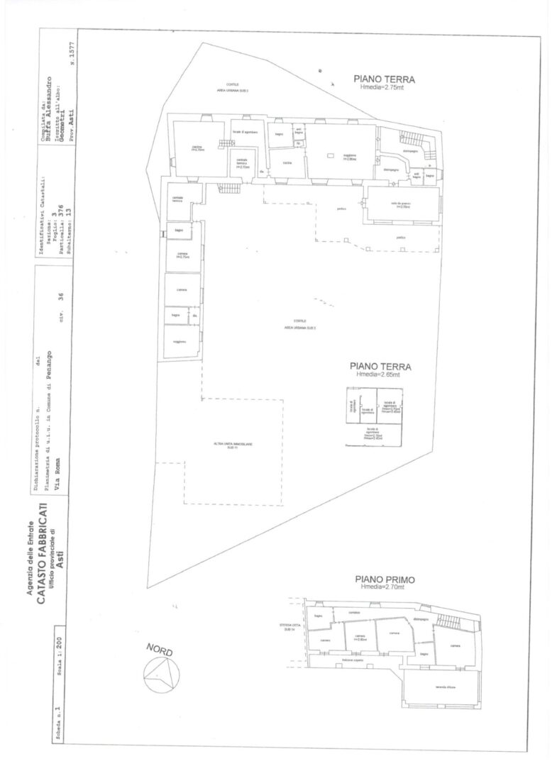 Il Complesso dei Bajocchi è posto in alta collina, a Penango, distante pochi km da Moncalvo. Libero sui quattro lati, disposto su due piani, con accesso da cancellata su cortile indipendente rappresenta un’ottima opportunità di investimento nel ricettivo. Il Complesso è suddiviso in tre “blocchi”, una piccola parte residenziale (attualmente abitata dai proprietari), la parte centrale dove si trovano le varie camere adibite a B&B e la storica parte dedicata all’agriturismo, al pian terreno, e al residenziale principale al piano primo. Il tutto è disposto nel seguente modo: