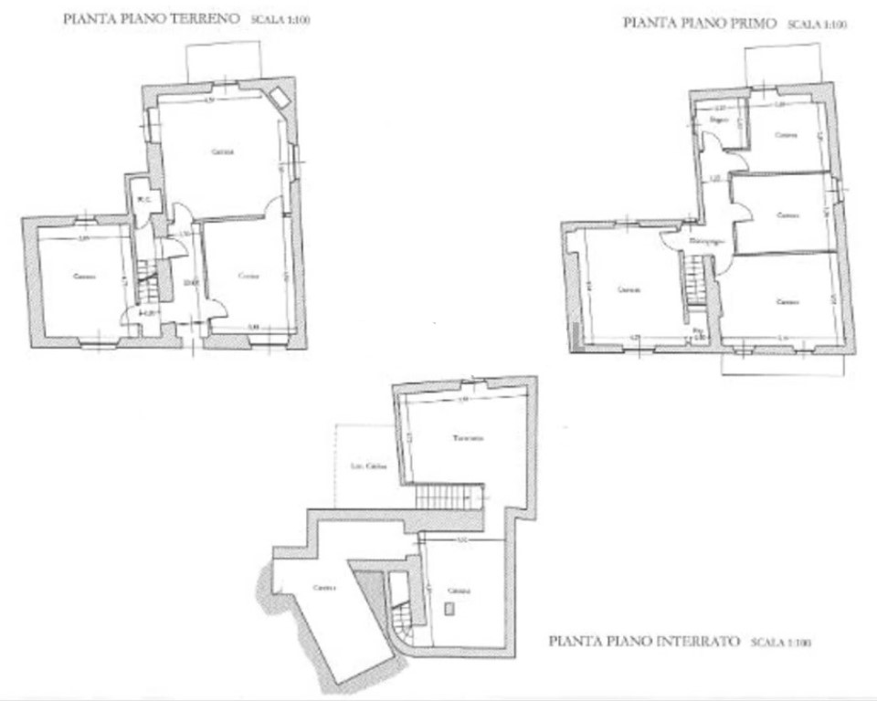 Piano Seminterrato: locale caldaia, due cantine e una tavernetta.