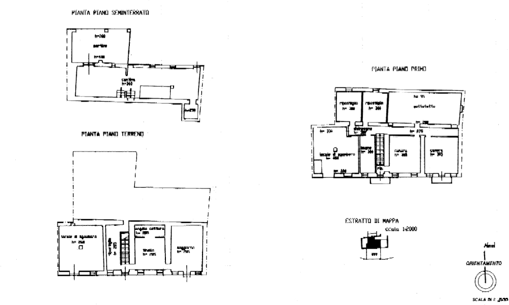 Piano Terra: ingresso su vano scala, stanza, soggiorno con cucinotto, sala da pranzo e locale di sgombero (ex stalla).