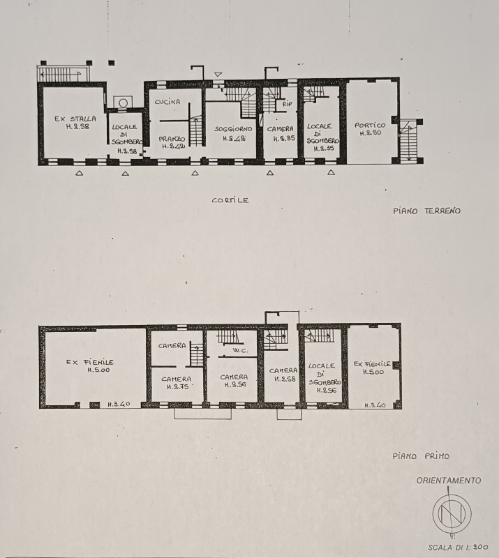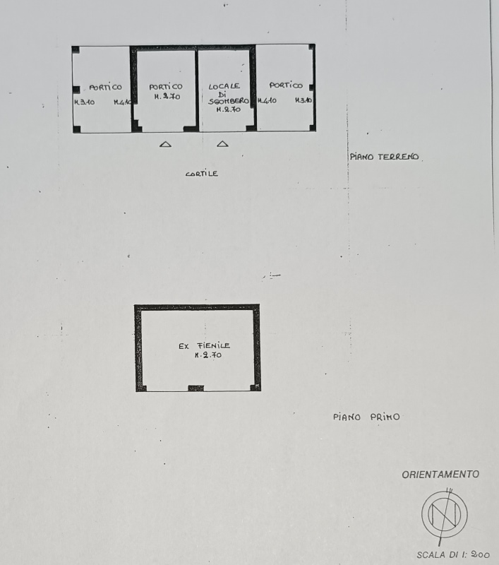 Piano Terra: ingresso su vano scala, soggiorno-cucina, sala da pranzo, locale di passaggio, locale di sgombero (ex stalla) e ulteriore stanza (accessibile solamente tramite porta esterna).