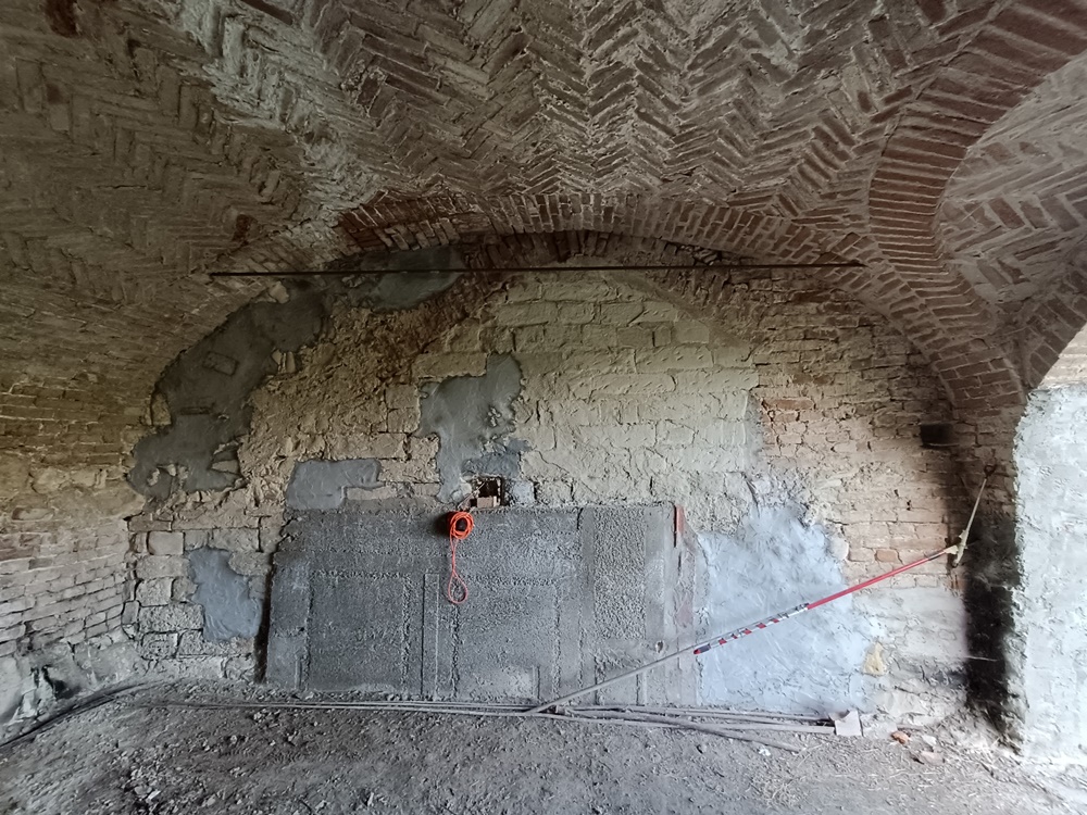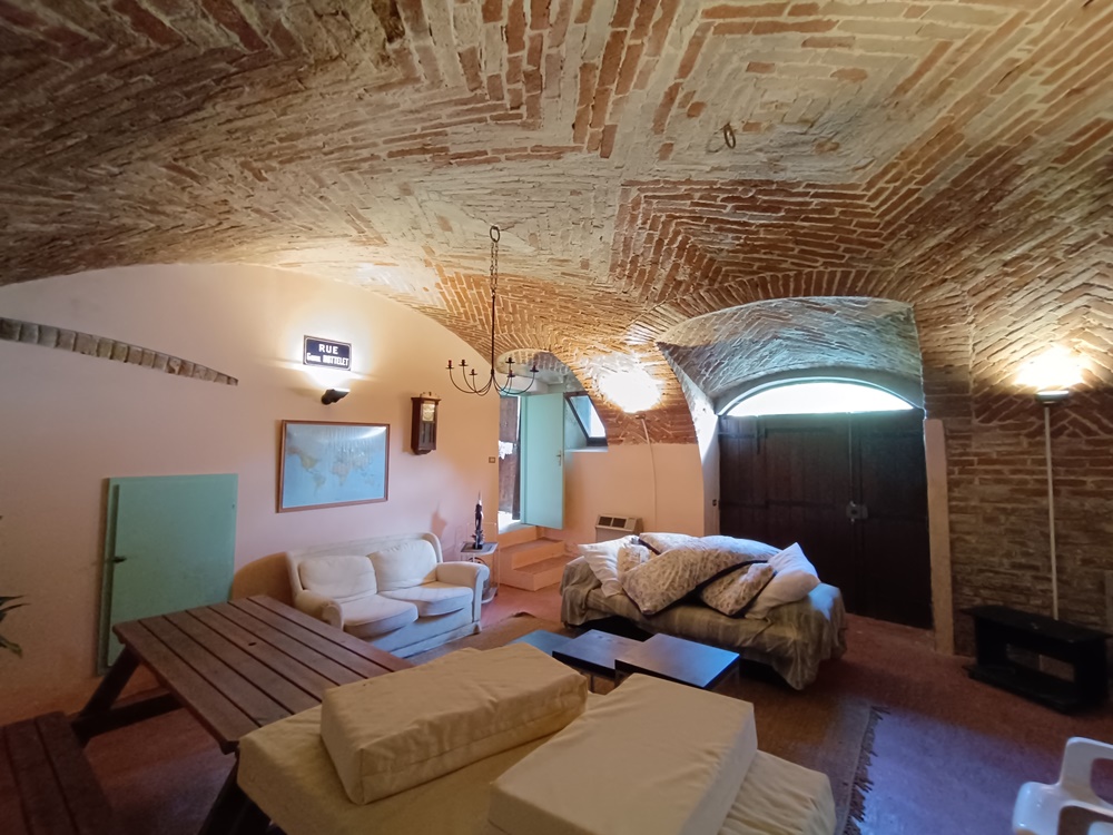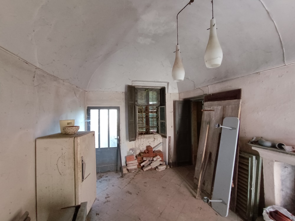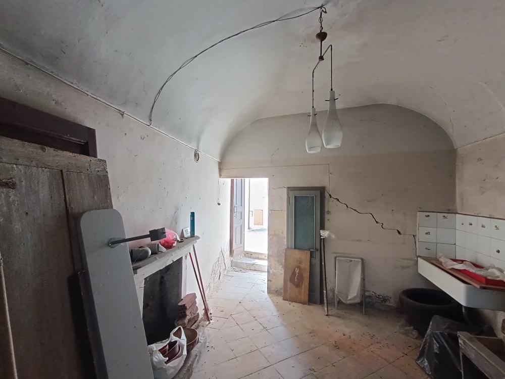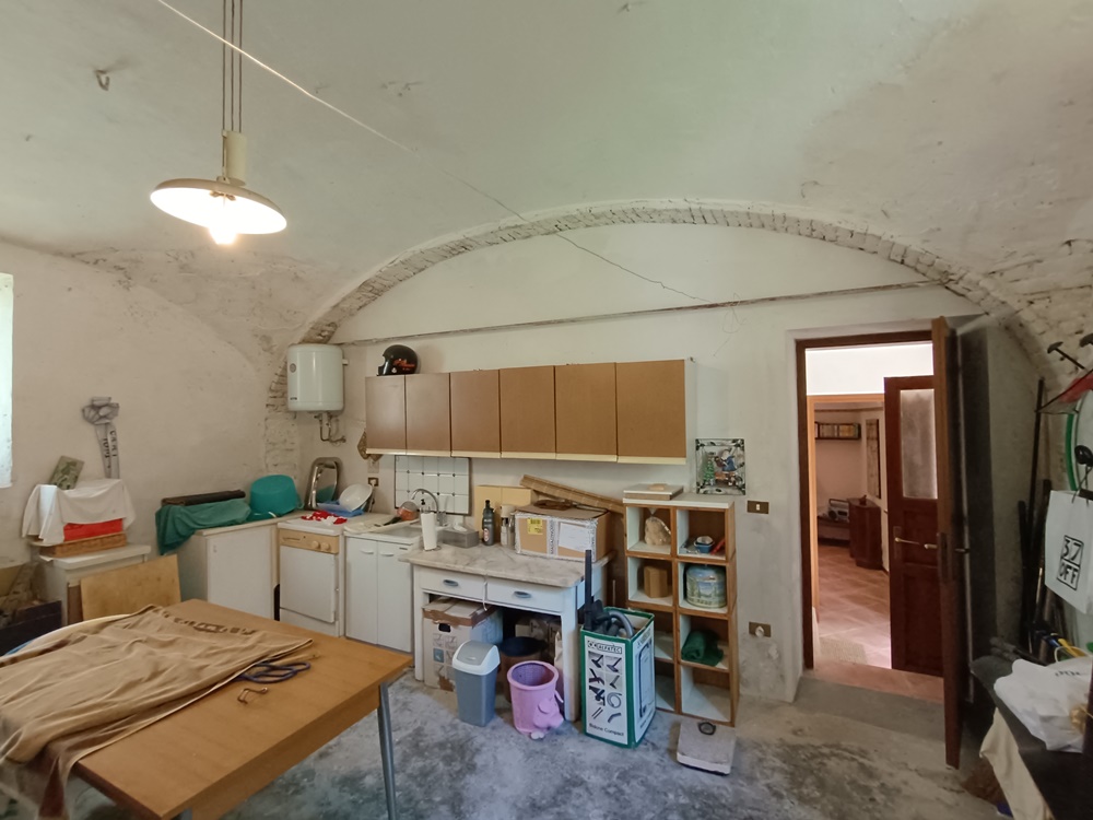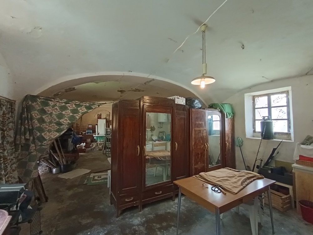 Piano Seminterrato: corridoio che separa l’ingresso dal vano e ampia taverna con tipici soffitti a volta.