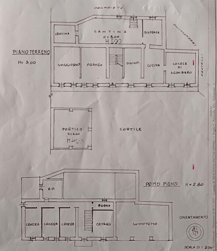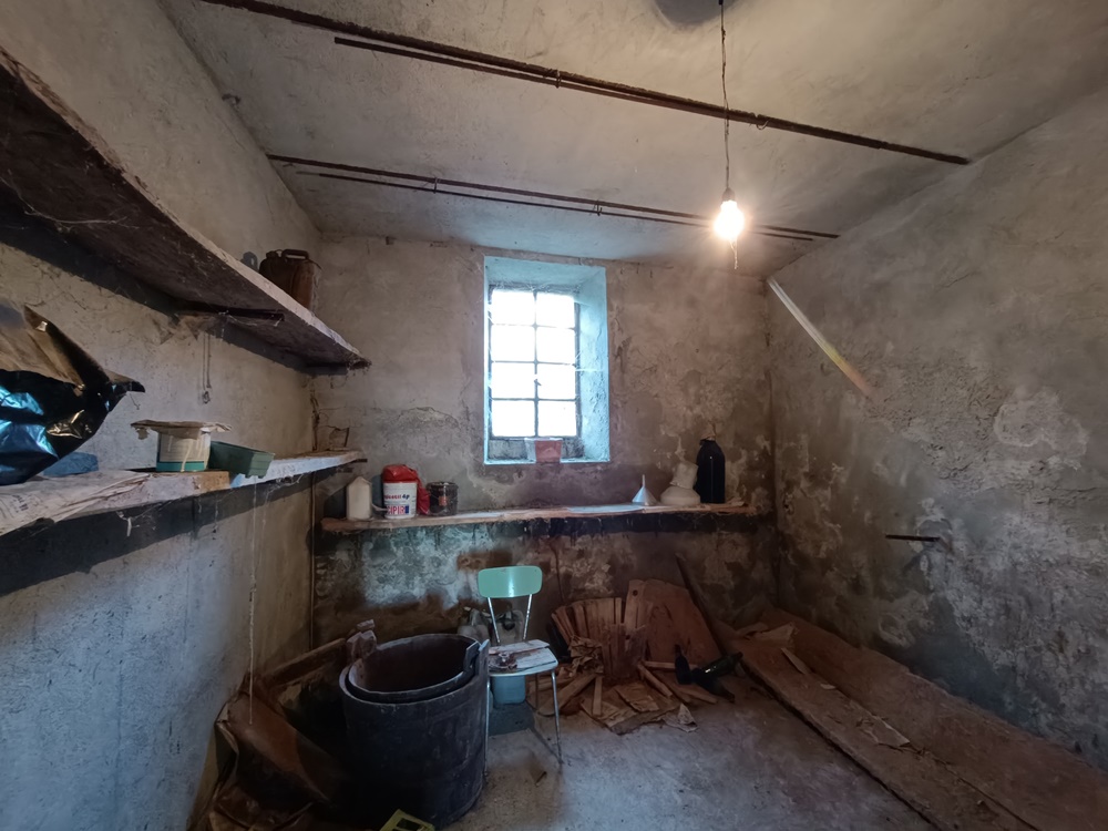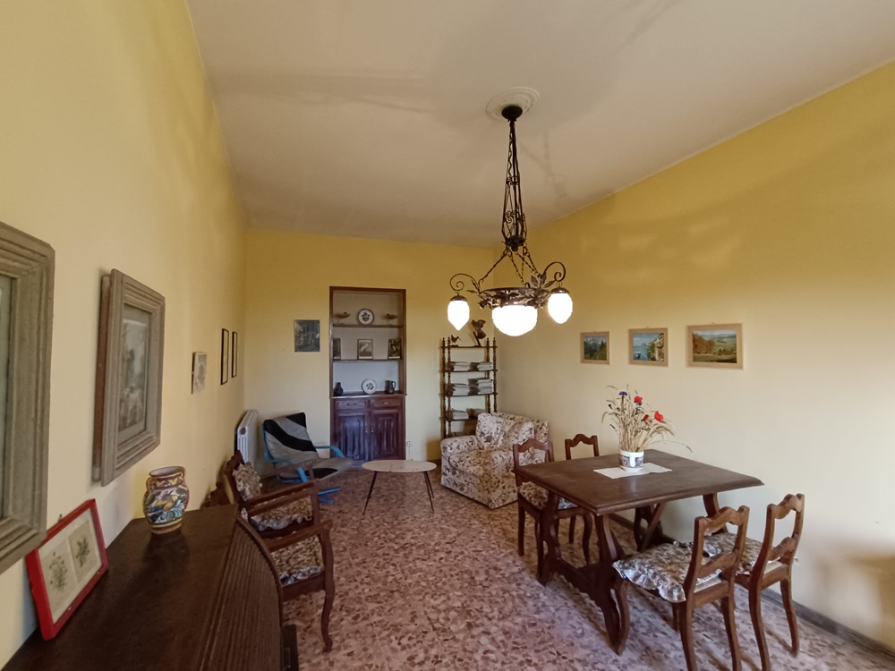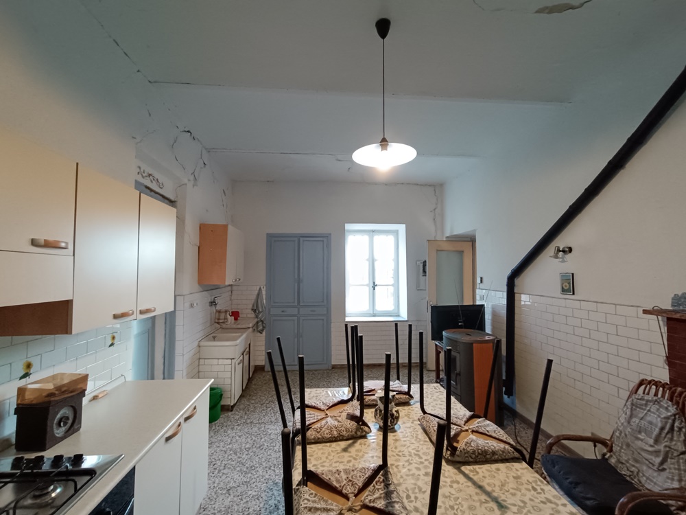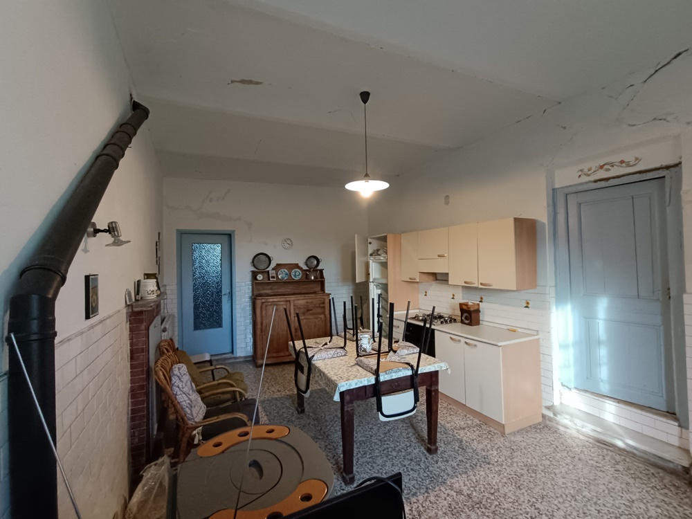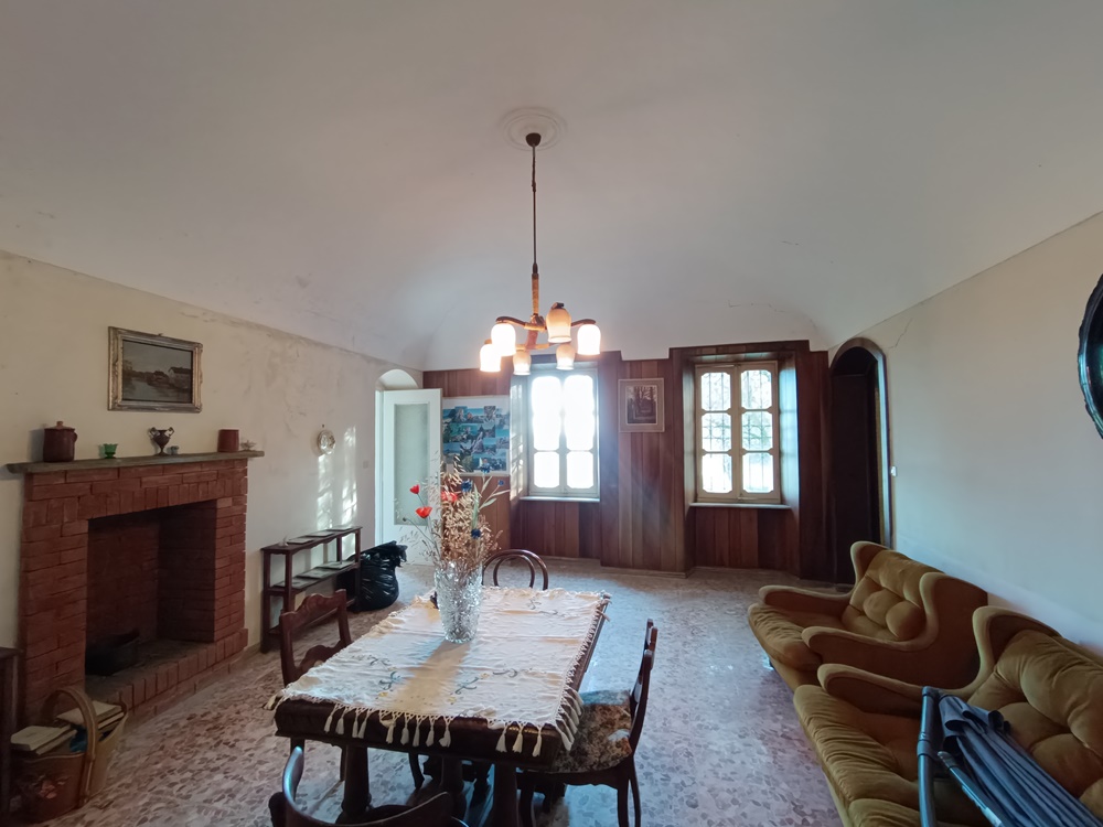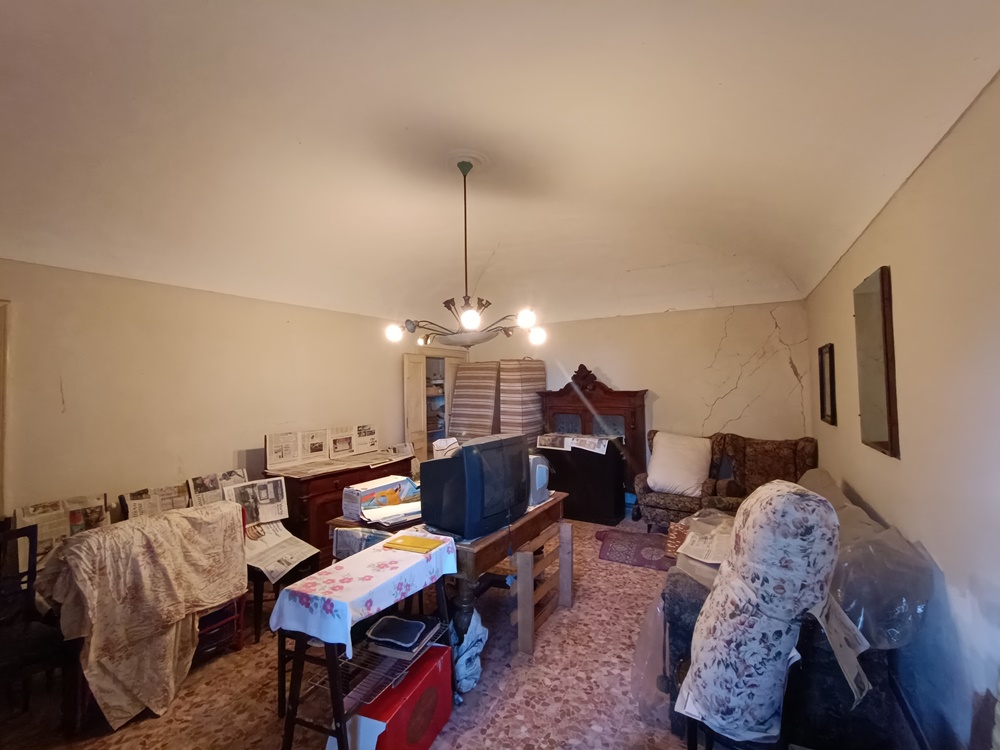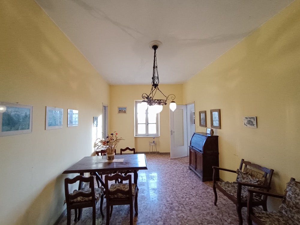 Piano Terra: ingresso su vano scala che divide le camere, soggiorno, cucina, sala da pranzo, locale di sgombero (con accesso autonomo sull’esterno), dispensa e due cantine a nudo tetto (una delle quali con accesso diretto sul retro dell’immobile destinato solamente alla manutenzione dello stabile).
