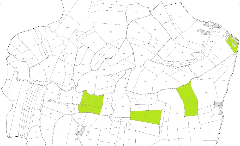 Porticato in pessime condizioni antistante all’immobile (possibilità di recupero). Completano la proprietà i 1.500 mq circa di terreno a corpo e gli ulteriori 15.000 mq circa di terreno in corpo staccato. Paese con servizi e attività commerciali.