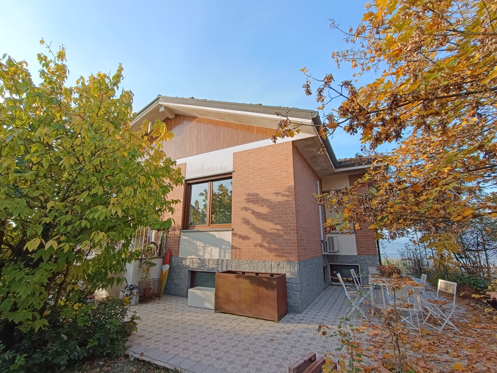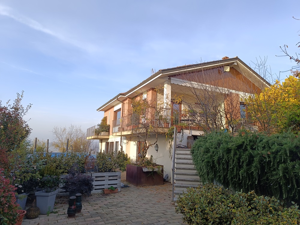 In una piccola Frazione di Montiglio Monferrato, posizionata in uno dei punti più panoramici dei dintorni, proponiamo una villa unifamiliare (volendo riadattabile a bifamiliare) totalmente ristrutturata, circondata da un terreno di circa 2.000 Mq. in parte alberato (disponibile ulteriore terreno a corpo su richiesta), libera su quattro lati, con piscina, posto auto scoperto, fotovoltaico (11KWh con batterie di accumulo e colonnina per ricaricare i mezzi elettrici) e allaccio alla FIBRA. L’immobile, disposto su due piani, è composto nel seguente modo:
