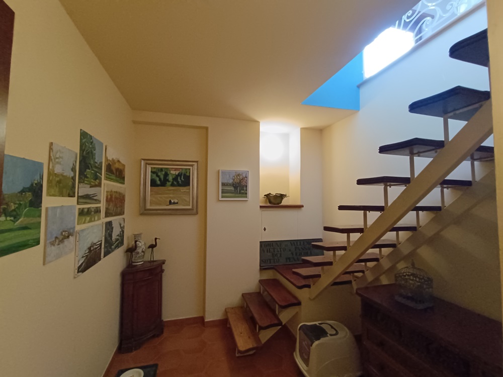 Piano Terra: ingresso su corridoio che separa i vani, soggiorno/cucina, due bagni, camera da letto, ripostiglio, ulteriore camera, locale di sgombero e cantina.